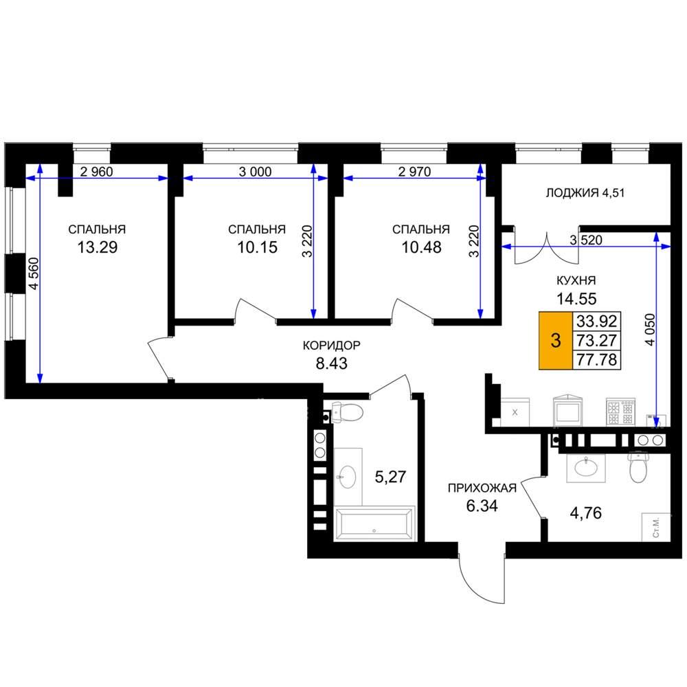 | Продается 3-комн. квартира, площадью 77.78 м2 в монолитно-кирпичной новостройке. Возможен вариант покупки с использованием ипотечных средств, есть рассрочка, возможна покупка с использованием материнского капитала, есть военная ипотека.