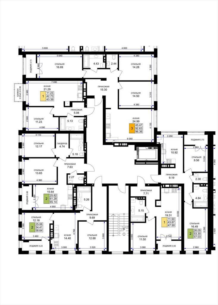 общая 47,5 м2, жилая 11,5 м2, кухни 19,31 м2 |