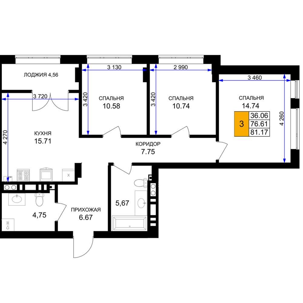 | Продается 3-комн. квартира, площадью 81.17 м2 в монолитно-кирпичной новостройке. Возможен вариант покупки с использованием ипотечных средств, есть рассрочка, возможна покупка с использованием материнского капитала, есть военная ипотека.
