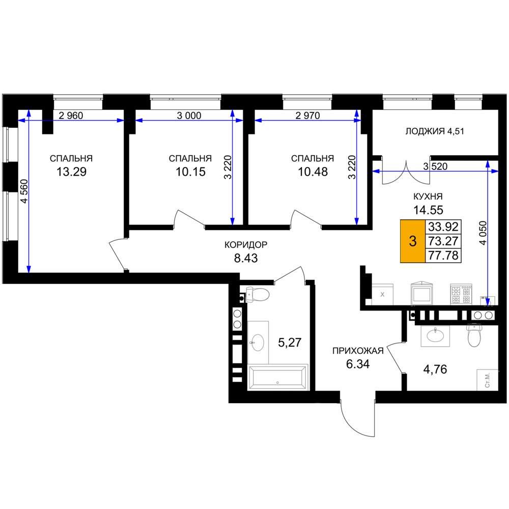 | Продается 3-комн. квартира, площадью 77.78 м2 в монолитно-кирпичной новостройке. Возможен вариант покупки с использованием ипотечных средств, есть рассрочка, возможна покупка с использованием материнского капитала, есть военная ипотека.