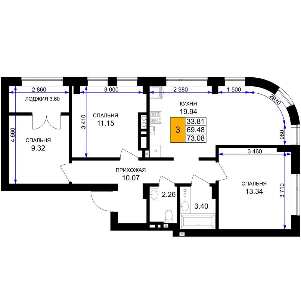 | Продается 3-комн. квартира, площадью 73.08 м2 в монолитно-кирпичной новостройке. Возможен вариант покупки с использованием ипотечных средств, есть рассрочка, возможна покупка с использованием материнского капитала, есть военная ипотека.