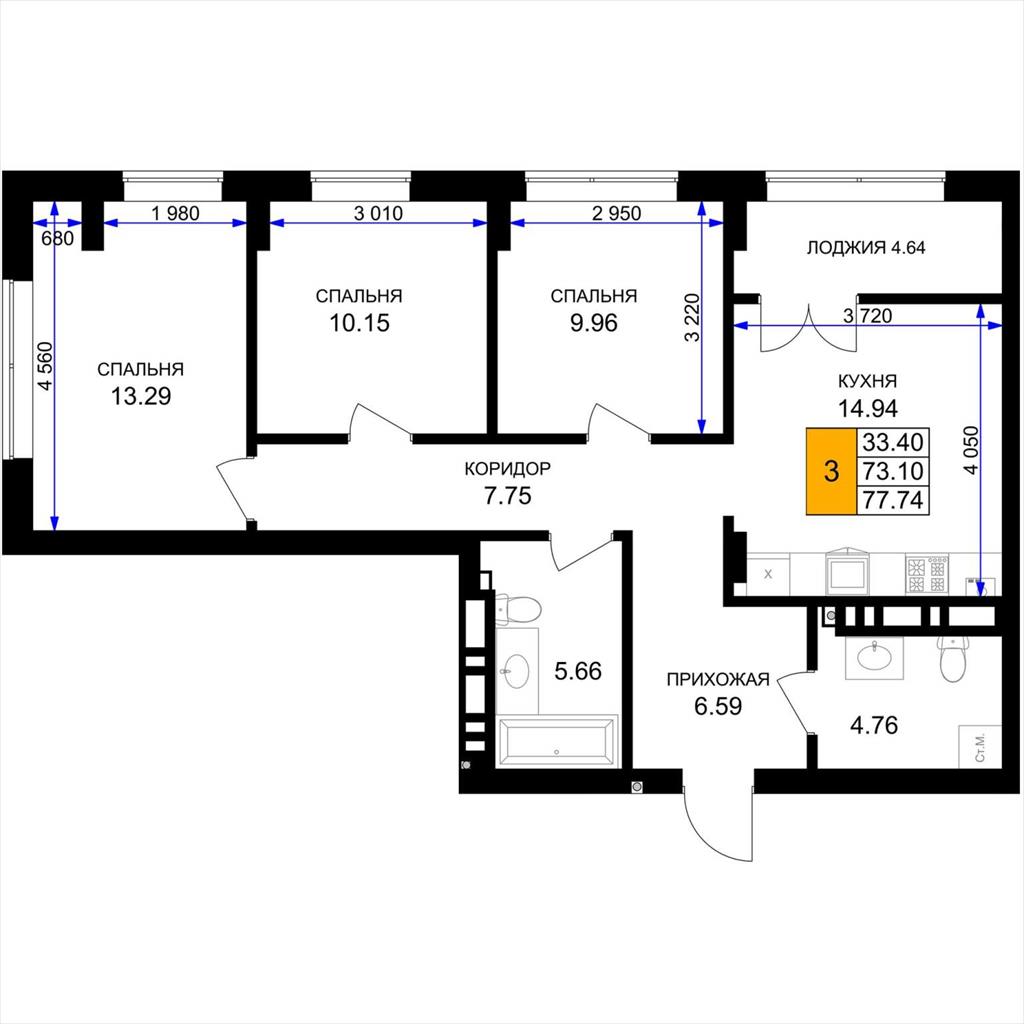 | Продается 3-комн. квартира, площадью 77.74 м2 в монолитно-кирпичной новостройке. Возможен вариант покупки с использованием ипотечных средств, есть рассрочка, возможна покупка с использованием материнского капитала, есть военная ипотека.